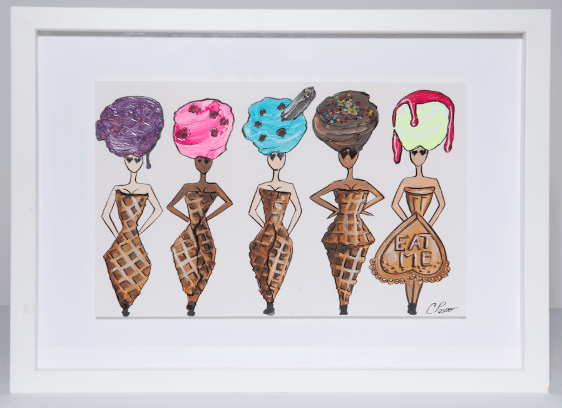 Cool down on a hot summer day with these delicious ice-cream pop dolls. Original pop art by up and coming artist Charlotte Posner.