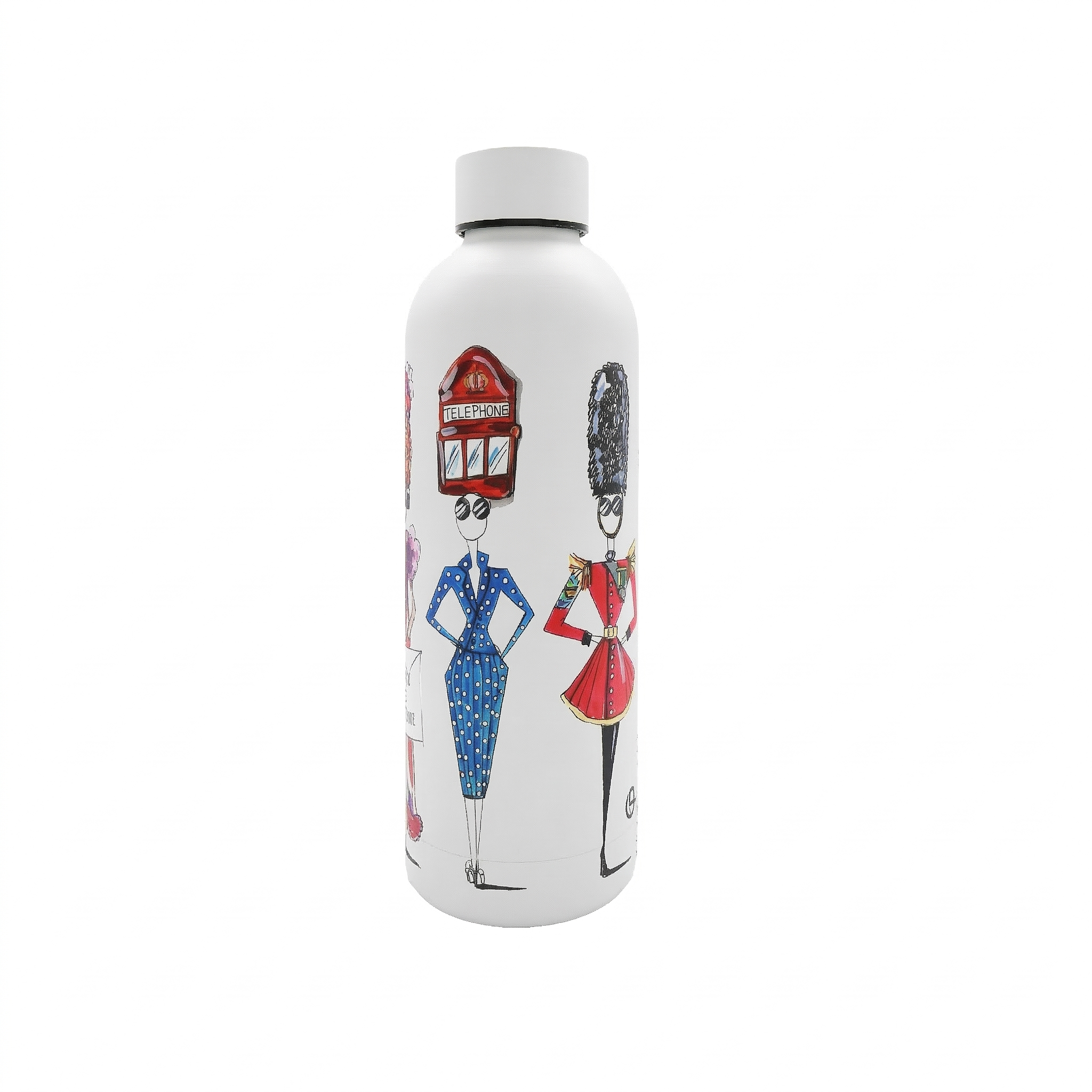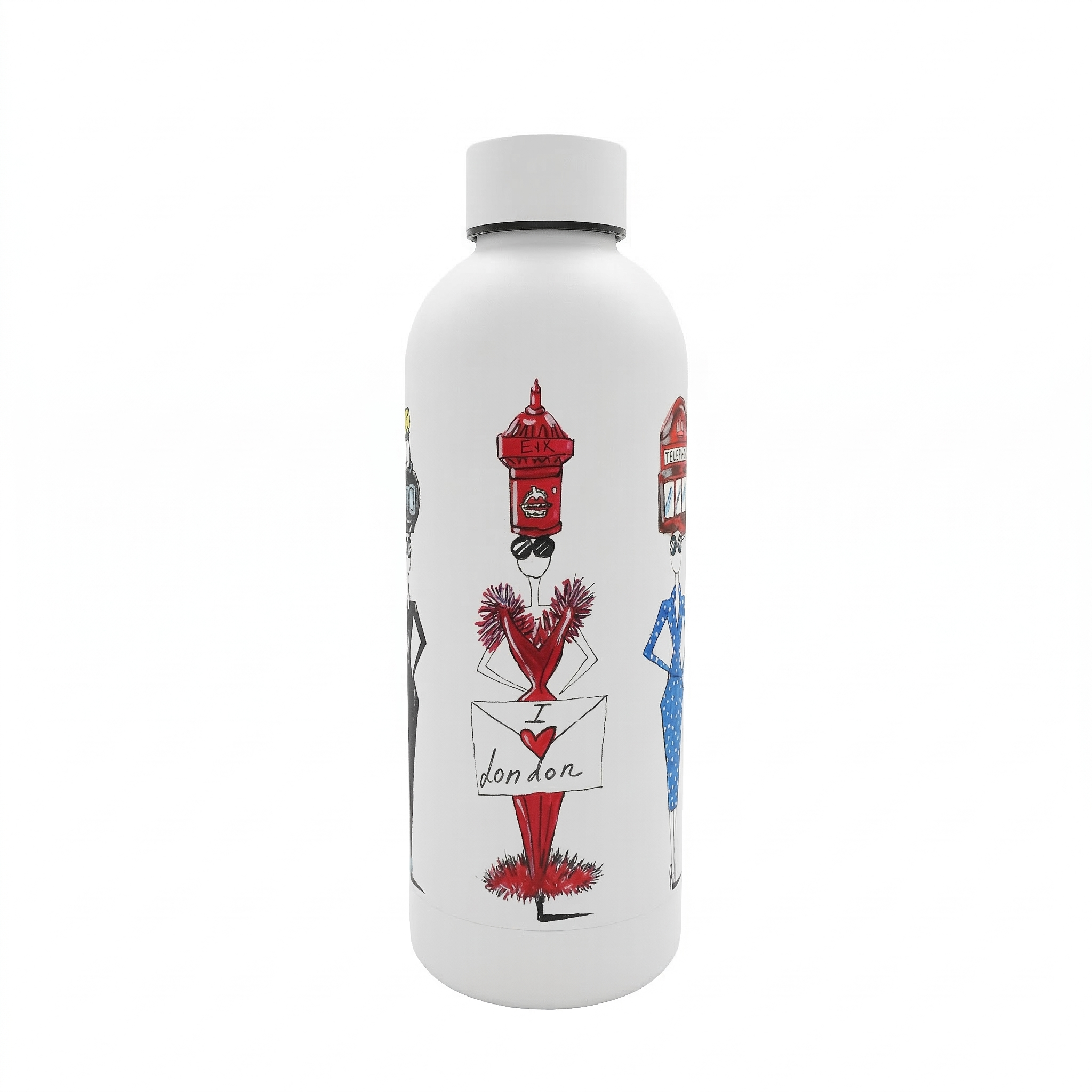 Charlotte is best known for her vibrant hand painted Pop Doll series in her signature style using traditional dip-pen and ink with acrylic and watercolour paint. This bottle features the London Chic artwork which you can also find on other products in the collection.