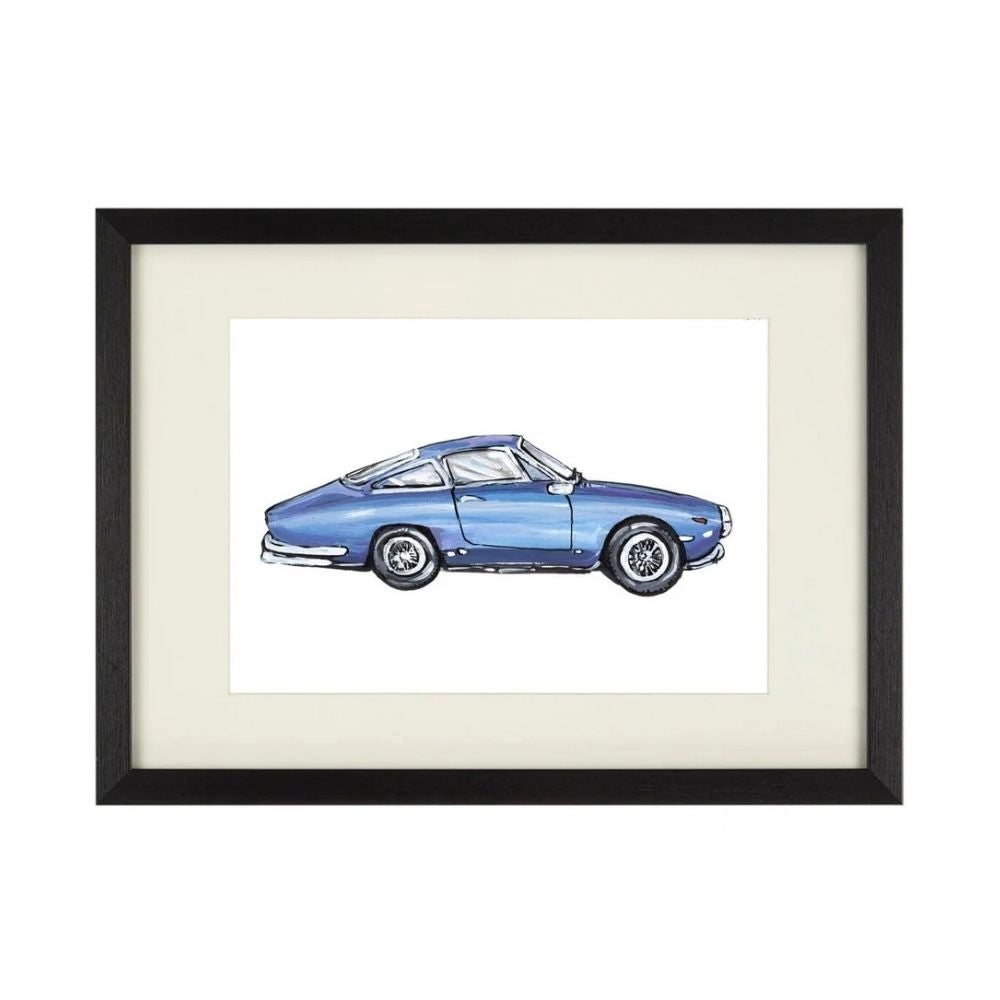 Bold, bright, and built for speed. Classic Car Blue captures the thrill of a classic sports car in a vivid electric blue, rendered with Charlotte Posner's clean, confident illustration style. A striking piece for any room and the perfect gift for anyone who loves beautiful machines.