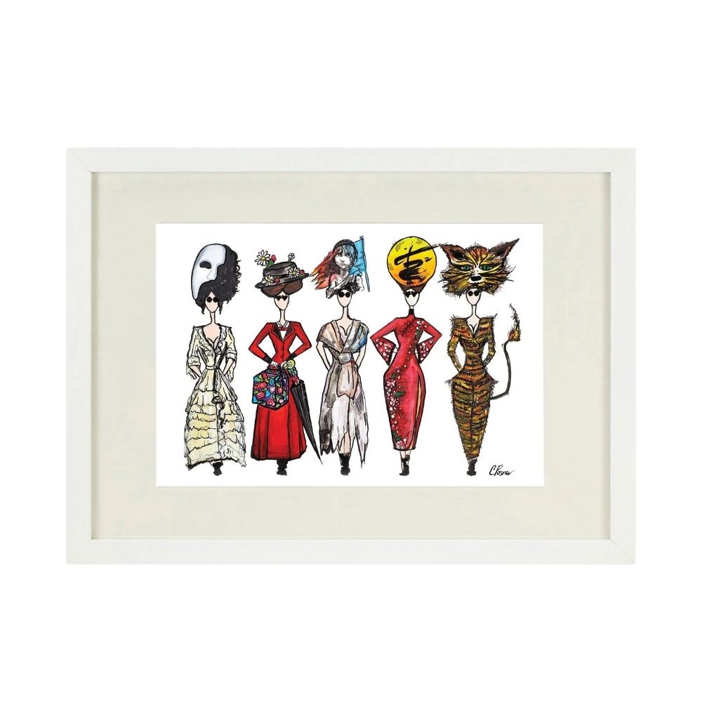LONDON SHOW GIRLS A4 LIMITED EDITION WHITE FRAMED PRINT
