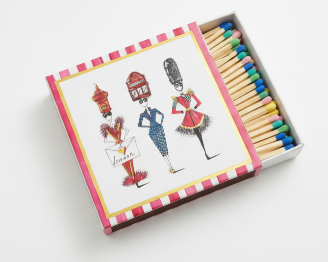Part of the London Chic collection, these luxury safety matches reflect Charlotte Posner’s love of fashion, illustration, and modern British style.
