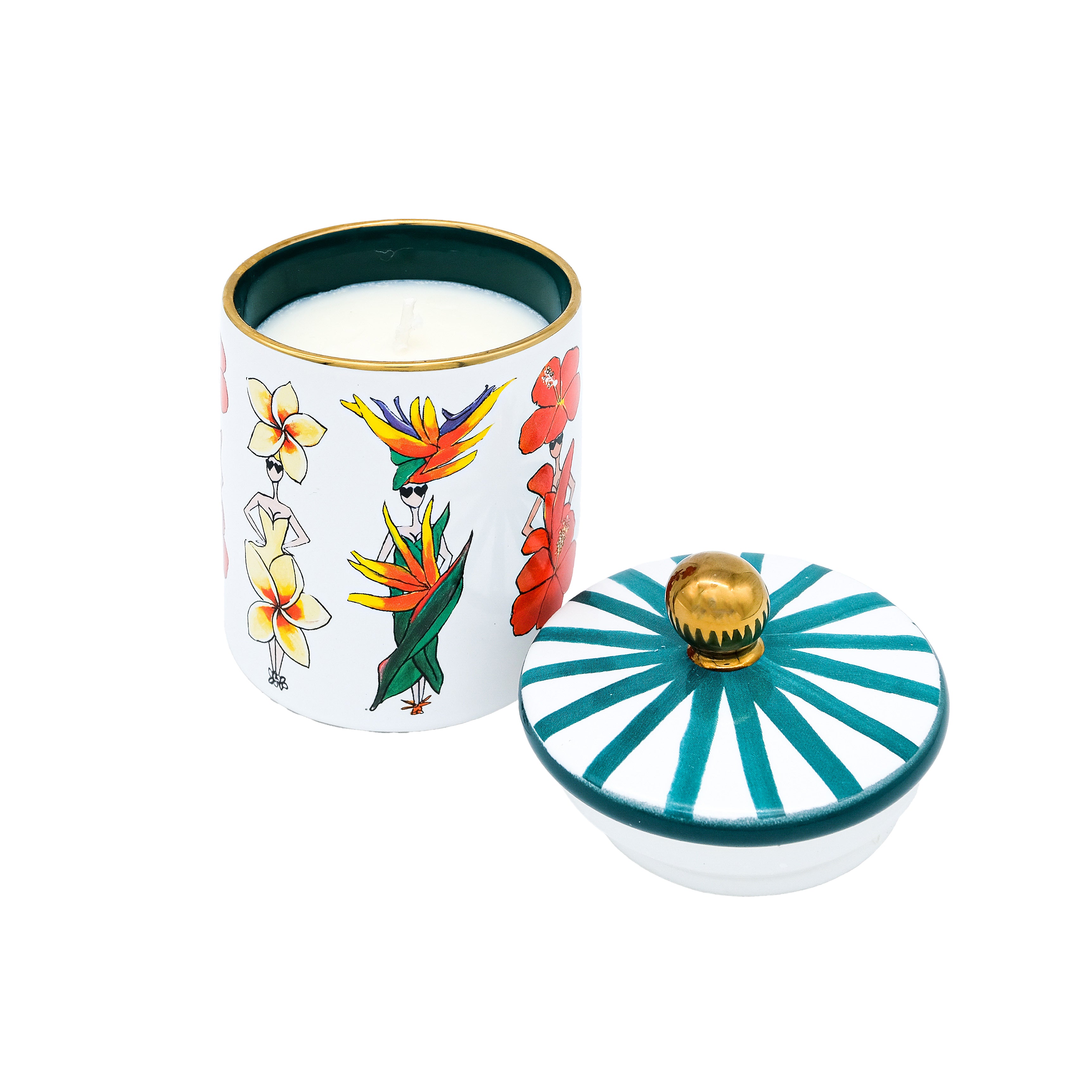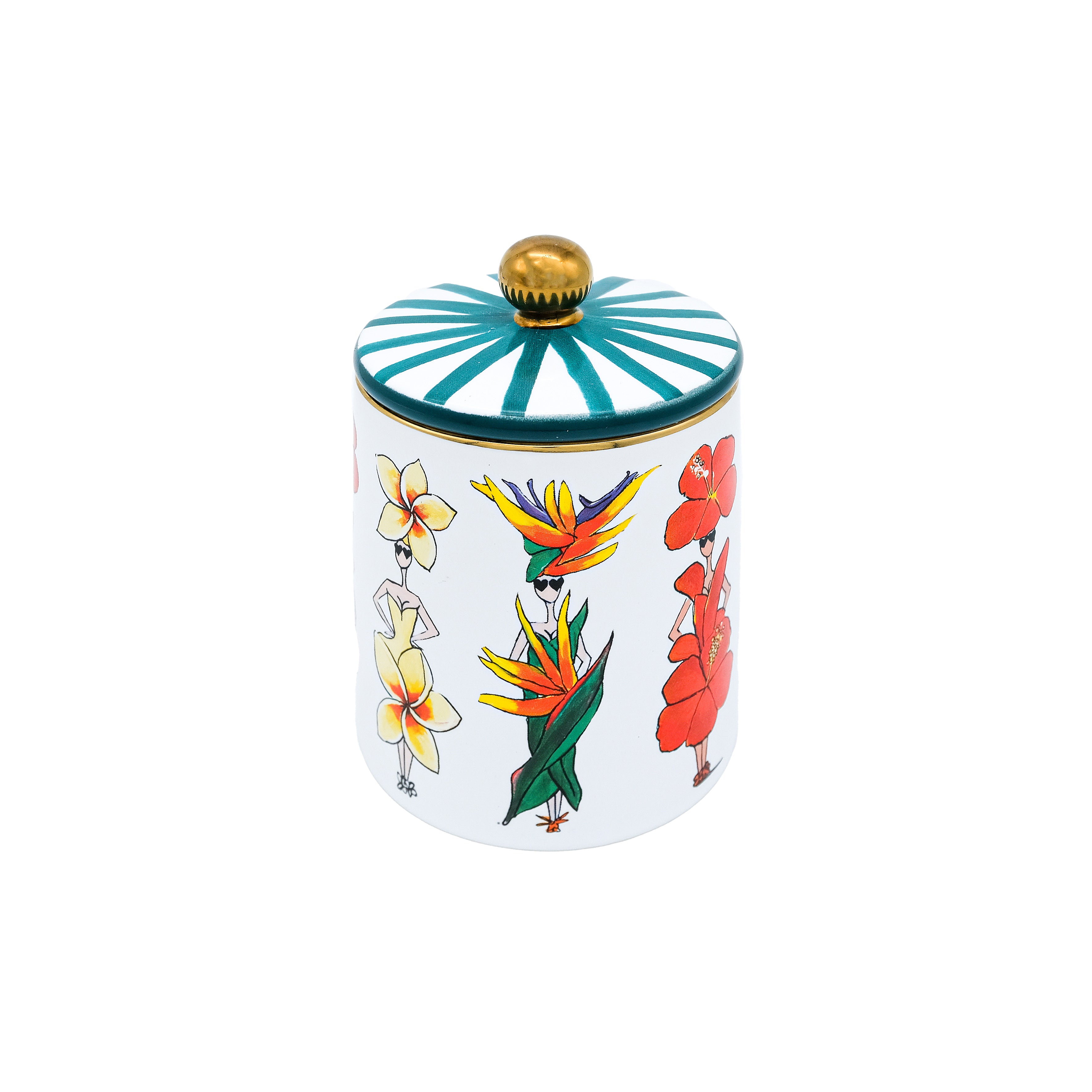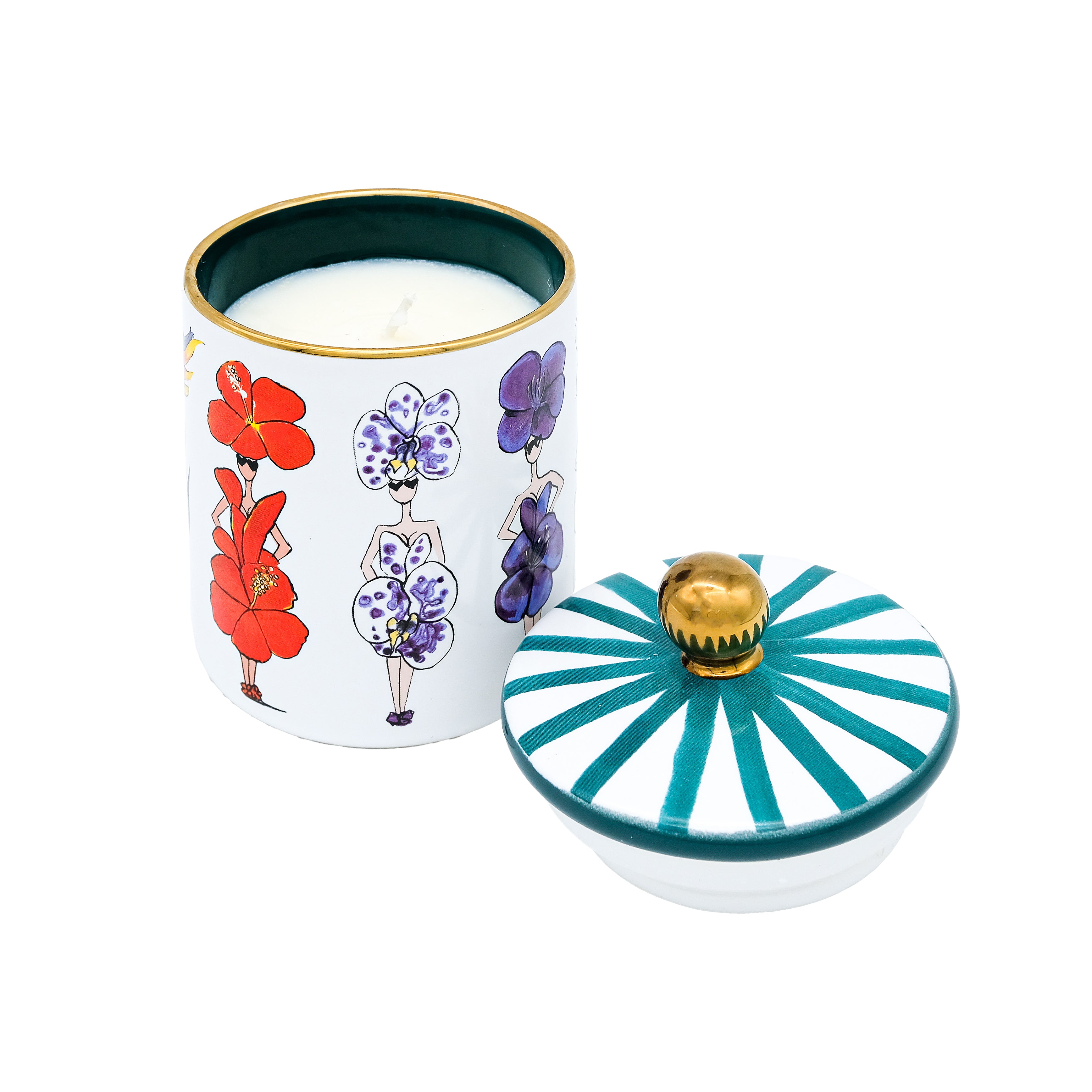 Relax, unwind, and add a touch of creative charm to your space with the Tropical Flowers Candle by Charlotte Posner. This luxury candle blends elegant floral notes and mediterranean fig for a fresh, modern scent – all presented in a beautifully illustrated ceramic vessel featuring Charlotte’s signature Pop Dolls design.